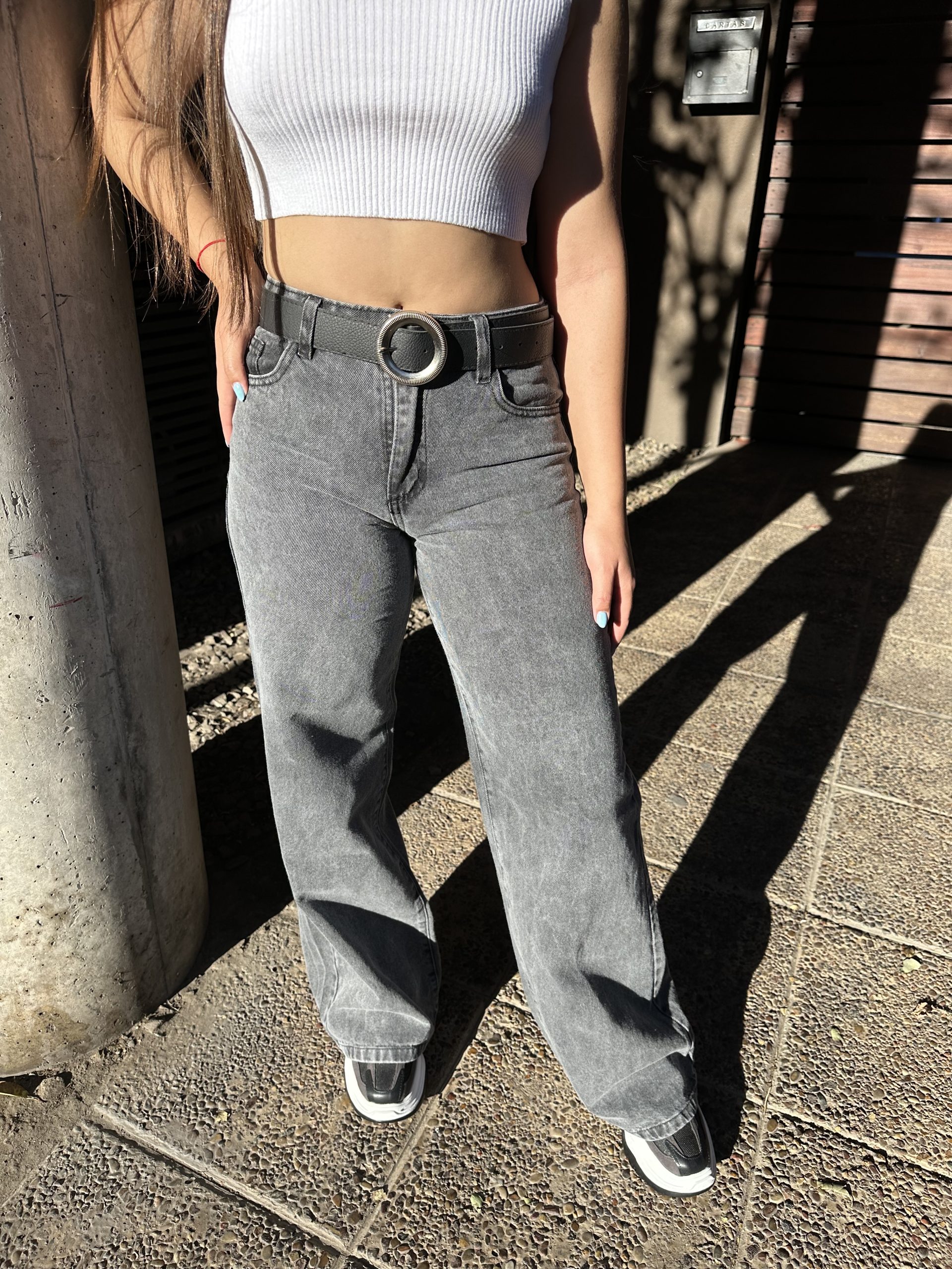 Jean Wide Leg T/Medio Gris