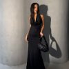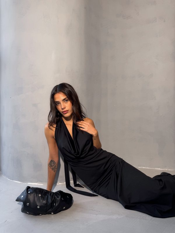 Vestido microfibra pesada largo con lazo al cuello, talle unico